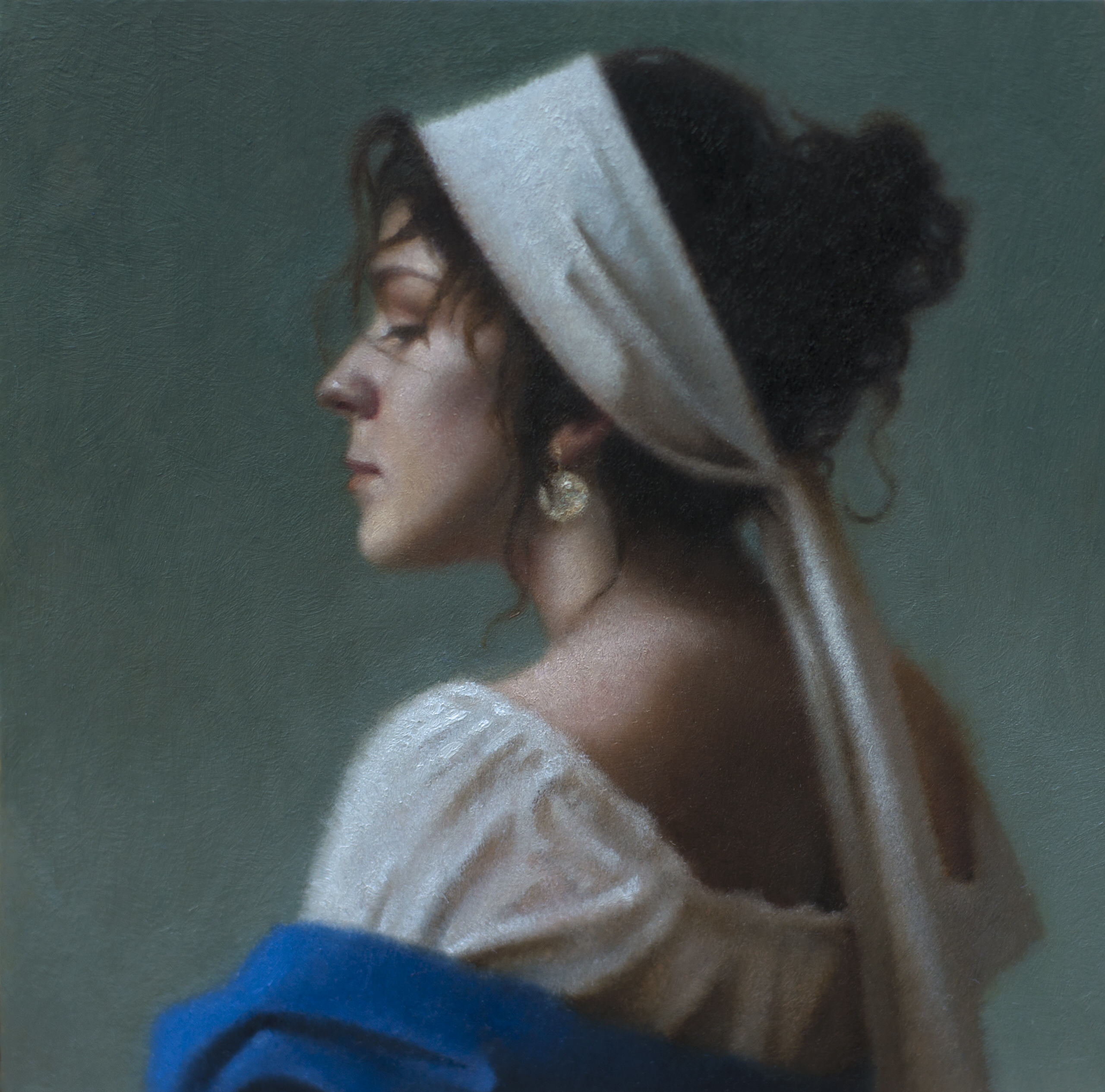 Model versus art: featuring my newest painting, “Petals and Thread.” #portraiture #oilpainting #eastoaksstudio